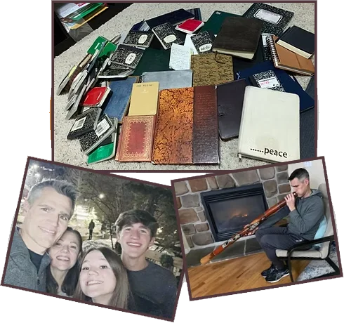 I love being with my family. I also like thinking of questions to answer, problems to solve, games to play, and songs to sing–which means doing a lot of writing and doodling journals and notebooks.