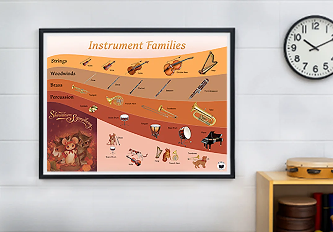 Beautiful 18×24″ Showdown Symphony-themed poster of the standard symphonic instruments in their families. Comes rolled in a tube, not folded. Each additional poster is only $5 each up to 5 posters. Contact us for larger orders.