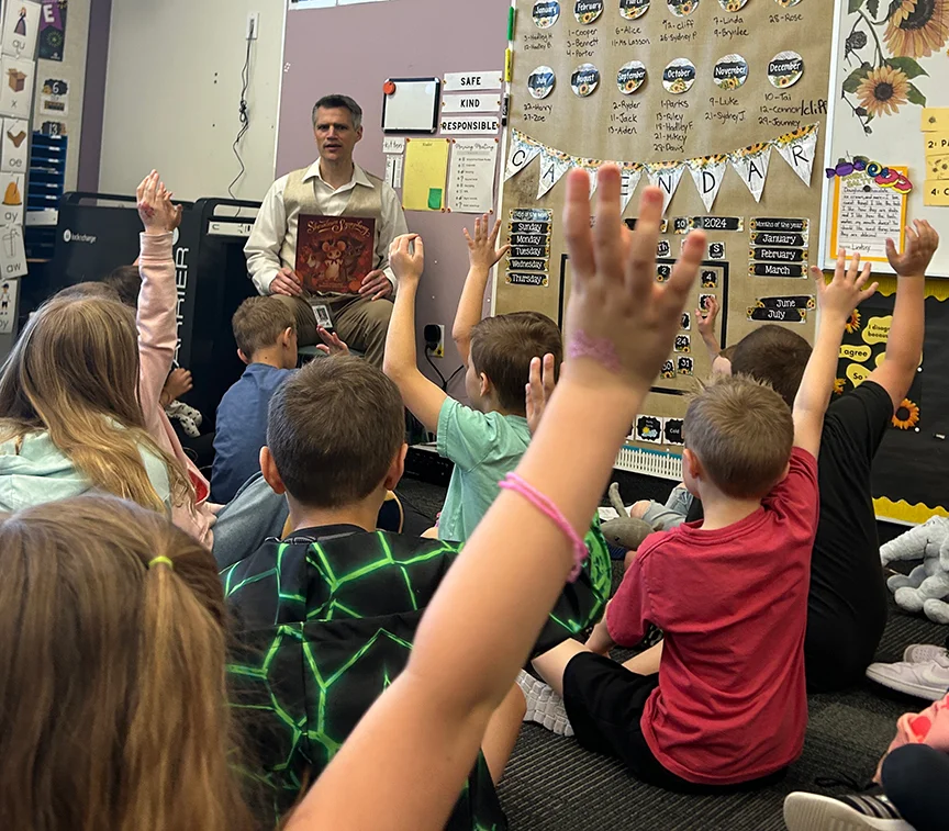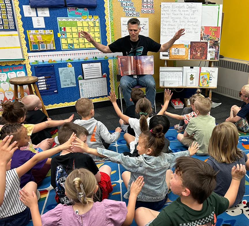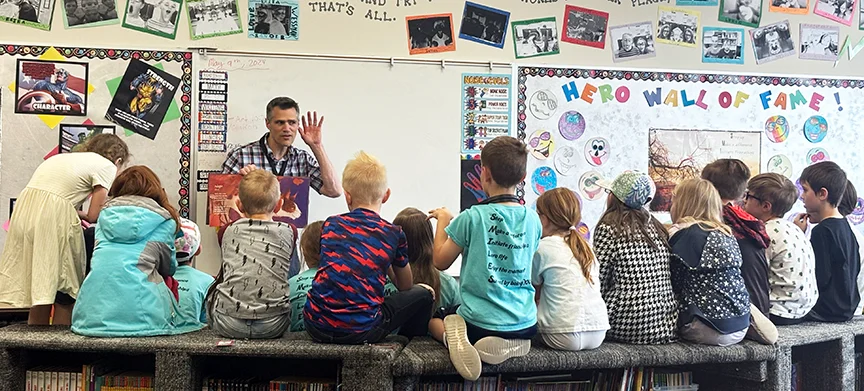 Reach out with some possible dates and an idea of presentations you’d like us to do (how many assemblies, class visits, and which grade levels and topics). We’ll work with you to design a delightful, enlightening experience for your students.