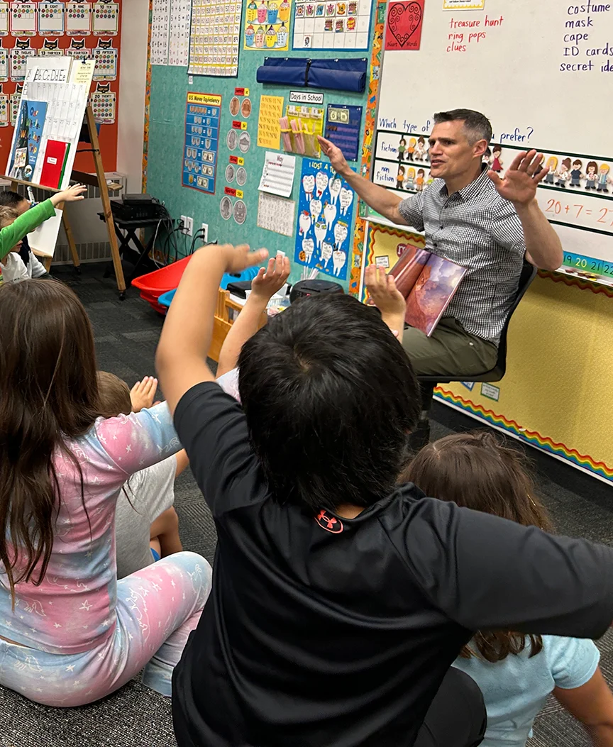 As experienced elementary educators, we love presenting to kids in any size or age grouping of assembly! We can engage your students in the following activities, depending on the length of time and your topic preferences: