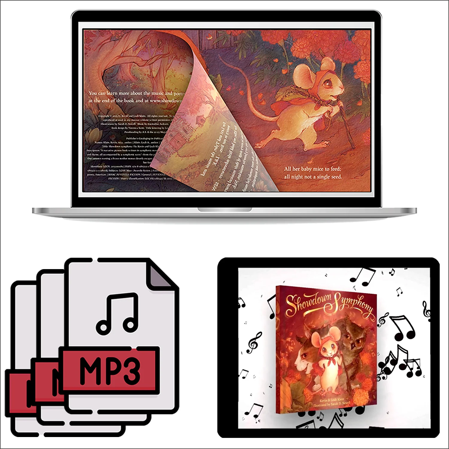 It’s all here! Two book video versions (one character-animated and page-turn animated) and three audio files of the book: narration only, music only, and narration + music. Enjoy the story wherever you are!